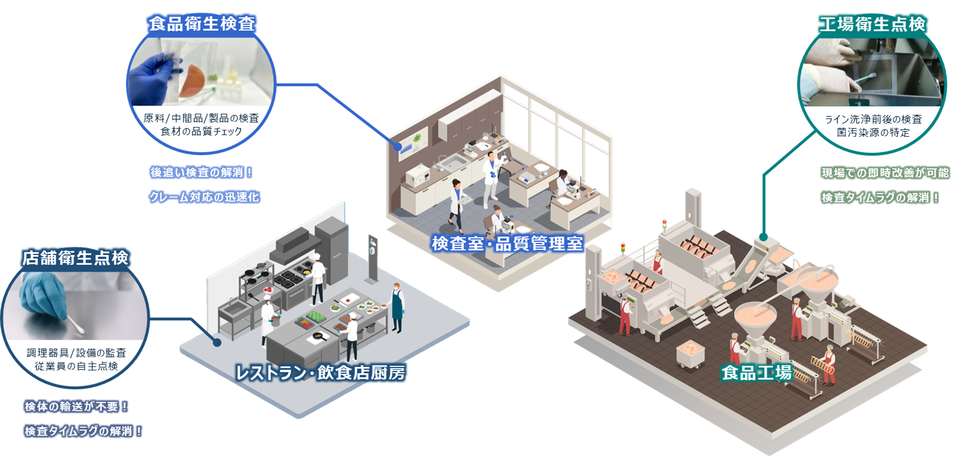 総菌検査キットの場合、環境や食材中の細菌汚染リスクを誰でも簡単に見える化できます。